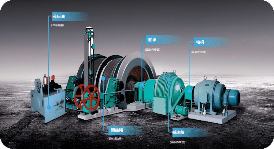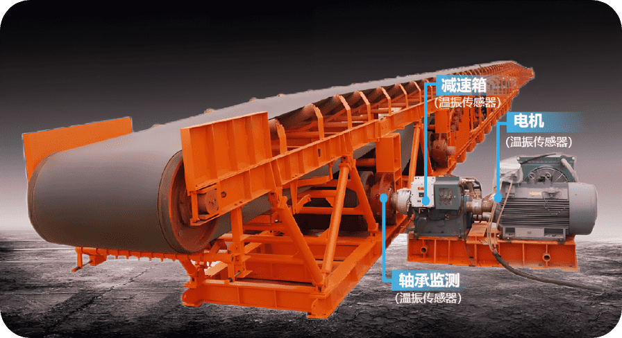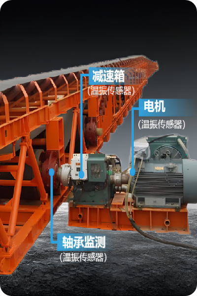對皮帶運輸機、刮板運輸機、提升機、中央水泵、破碎機等重要設(shè)備的電機、減速箱、軸承座、鋼絲繩等安裝振溫一體傳感器和視覺AI進行監(jiān)測,通過采集和分析振動、溫度、轉(zhuǎn)速等數(shù)據(jù)實現(xiàn)設(shè)備機構(gòu)運行狀態(tài)的實時在線監(jiān)測、分析和報警。能結(jié)合設(shè)備PLC中的運行小時數(shù)、軸承狀態(tài)、作業(yè)狀態(tài)、鋼絲繩狀態(tài)等工況參數(shù),對設(shè)備的運行、效率及剩餘壽命進行統(tǒng)計和評估,給出運維和維修建議,實現(xiàn)對設(shè)備全生命周期的管理,確保整機設(shè)備安全。