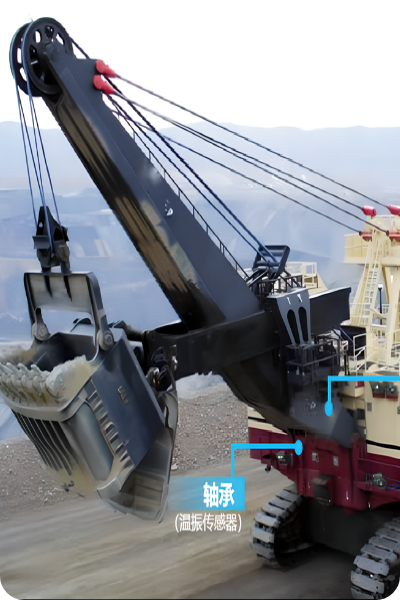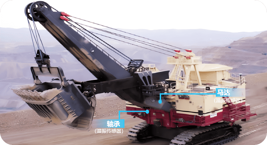 對鬥輪挖掘機、帶式輸送機、鏈鬥鏟等重要設(shè)備的電機、減速箱、軸承座、馬達等安裝振溫一體傳感器進行振動監(jiān)測,通過采集和分析振動、溫度、轉(zhuǎn)速等數(shù)據(jù)實現(xiàn)設(shè)備機構(gòu)運行狀態(tài)的實時在線監(jiān)測、分析和報警。能結(jié)合設(shè)備PLC中的運行小時數(shù)、軸承狀態(tài)、作業(yè)狀態(tài)等工況參數(shù),對設(shè)備的運行、效率及剩餘壽命進行統(tǒng)計和評估,給出運維和維修建議,實現(xiàn)對設(shè)備全生命周期的管理,確保整機設(shè)備安全。