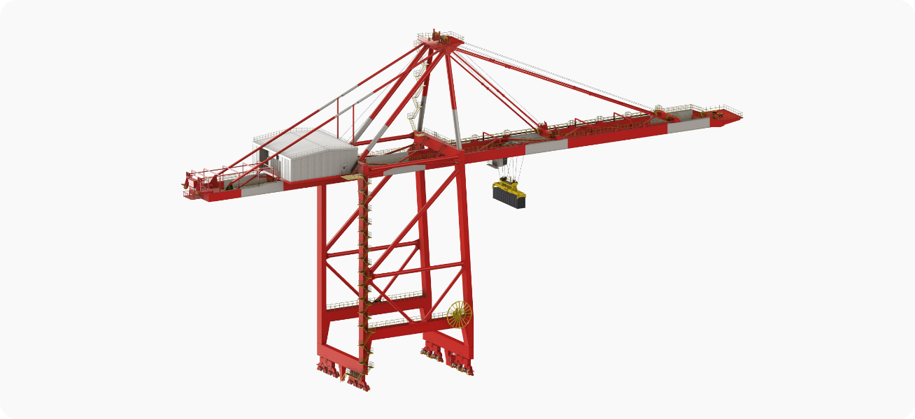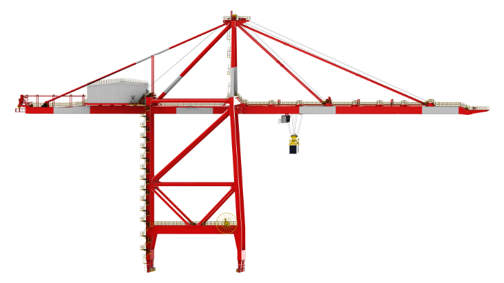 對岸橋的前拉桿、中拉桿、後拉桿、主梁、梯形門架、斜撐桿等受力集中點和重要部位、輪胎吊/軌道吊的主梁、門框立柱、主梁與立柱連接處等受力集中點和重要部位進行應力監(jiān)測,實時掌握受力大小,對受力過大進行預警,對受力不對稱進行拉力比和不對稱度進行分析,避免受力不均過大。