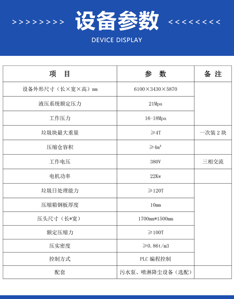 ◇設(shè)有垃圾儲存箱,適合集裝箱式散裝垃圾運(yùn)輸車卸料,減少運(yùn)輸費(fèi)用。